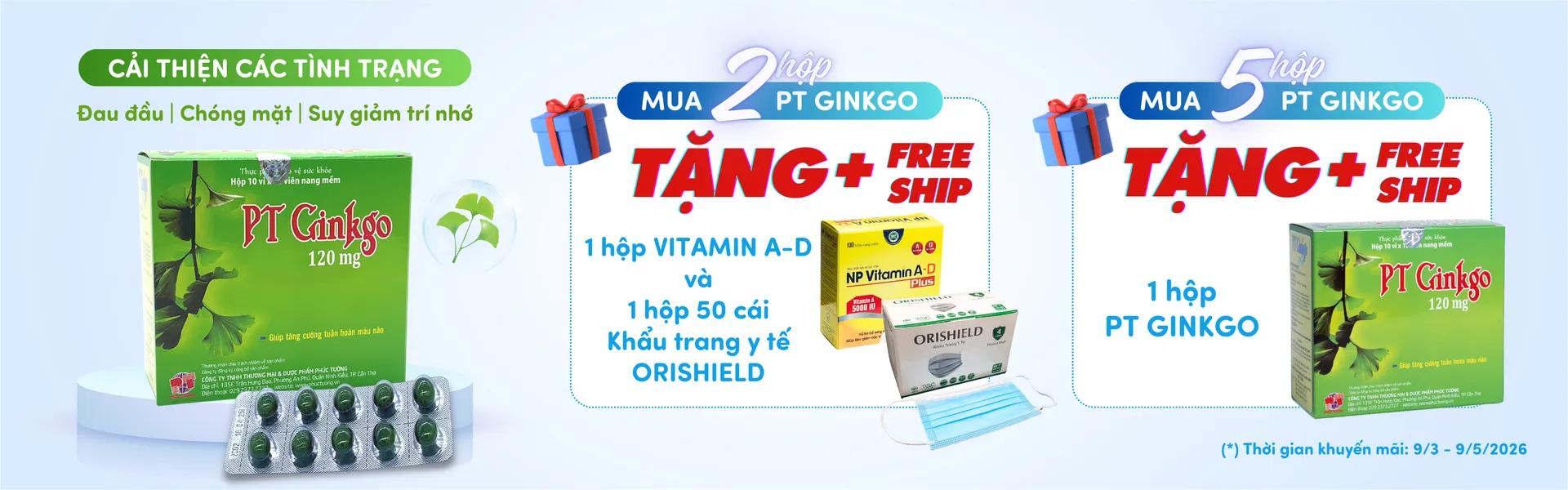 PT Ginkgo 120mg bổ não, tăng cường tuần hoàn não và cải thiện trí nhớ
