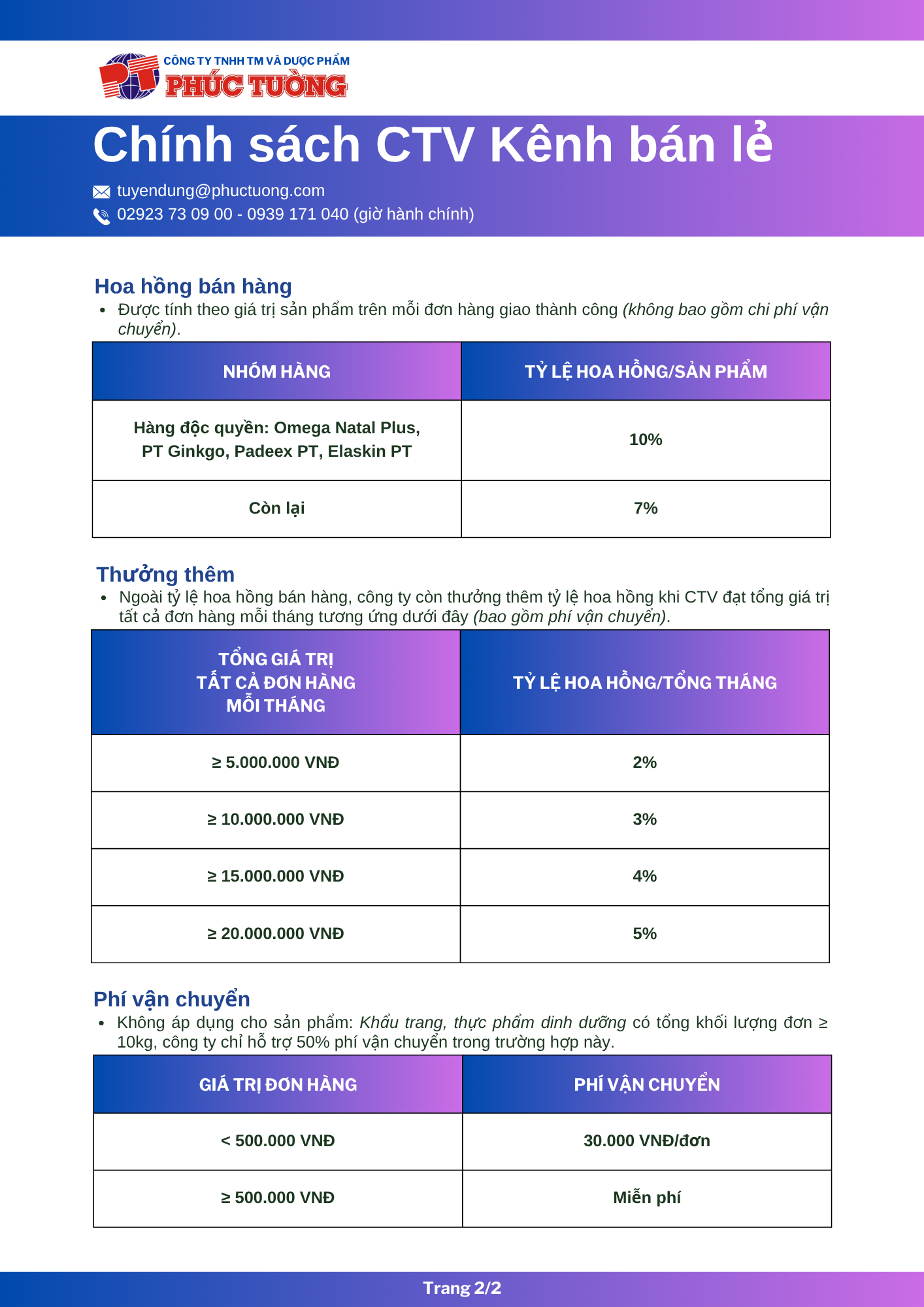 - Ví dụ 3: CTV bán được tổng giá trị tất cả đơn hàng trong tháng 5-2025 là: 8.000.000 VNĐ. Vậy hoa hồng CTV được nhận thêm trong tháng 5-2025 của CTV là: 8.000.000 x 2% = 160.000 VNĐ.