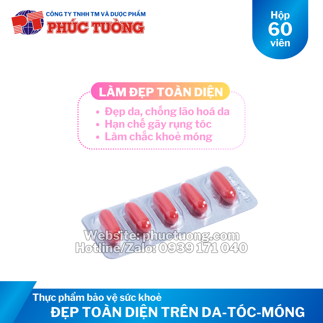CÔNG DỤNG Elaskin PT: Bổ sung L-Cystin, Vitamin E và Kẽm cho cơ thể. Hỗ trợ chống oxy hóa, giúp hạn chế lão hóa da, làm đẹp da, giúp cải thiện tình trạng sạm da, tóc gãy rụng, móng giòn.