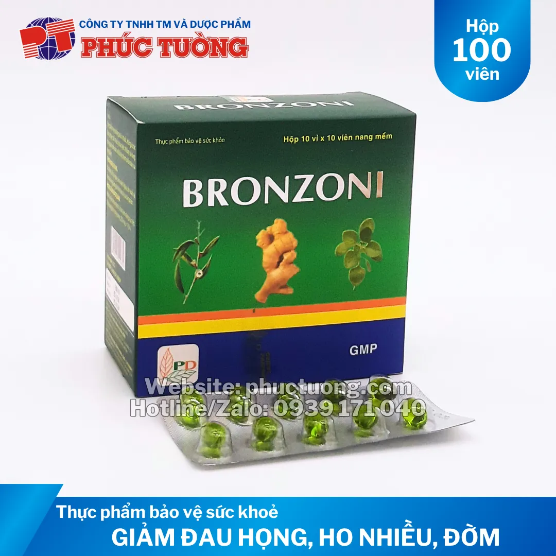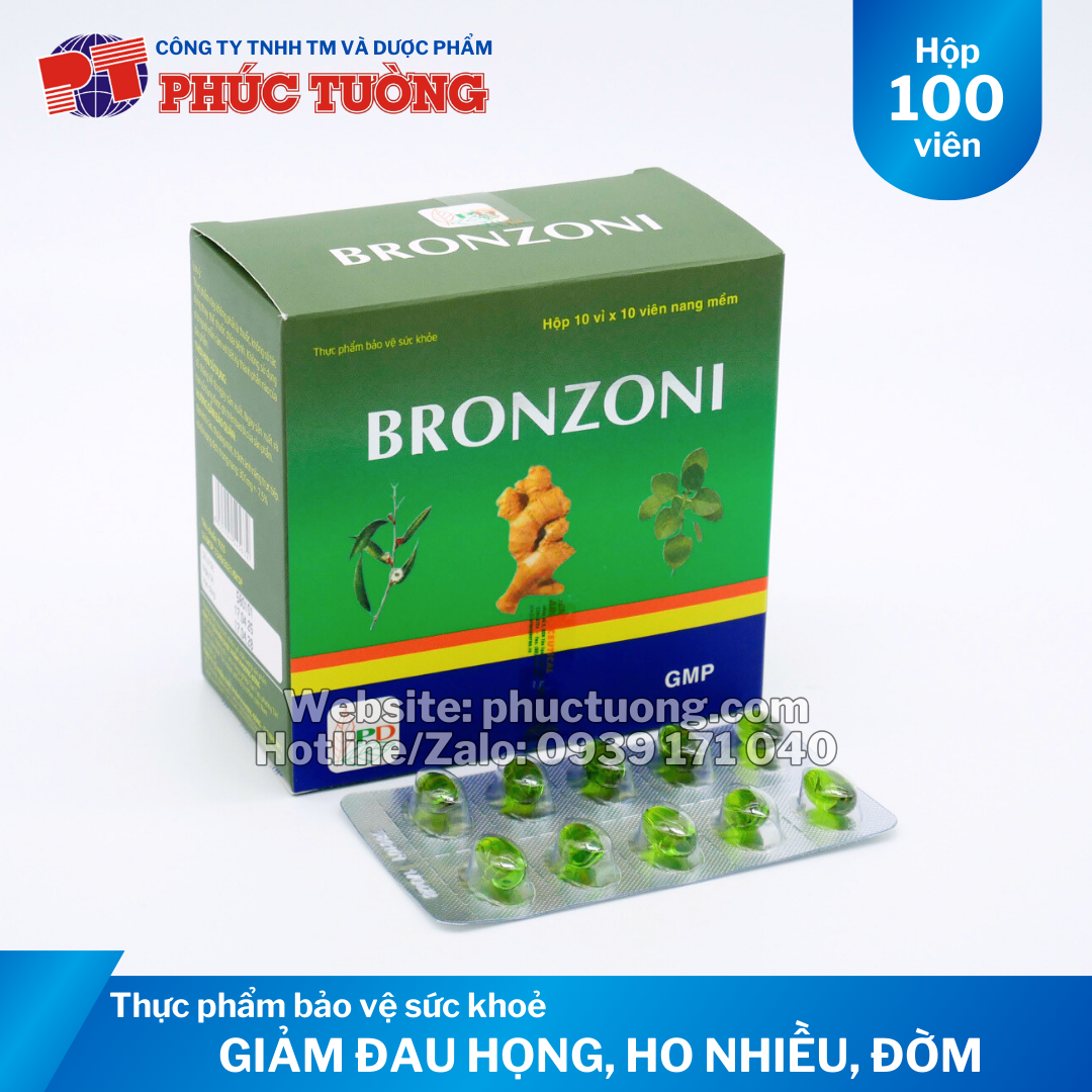 CÔNG DỤNG Bronzoni: Giúp bổ phế, hỗ trợ hạn chế ho nhiều, giảm tăng tiết đờm, giảm đau rát họng do ho kéo dài.