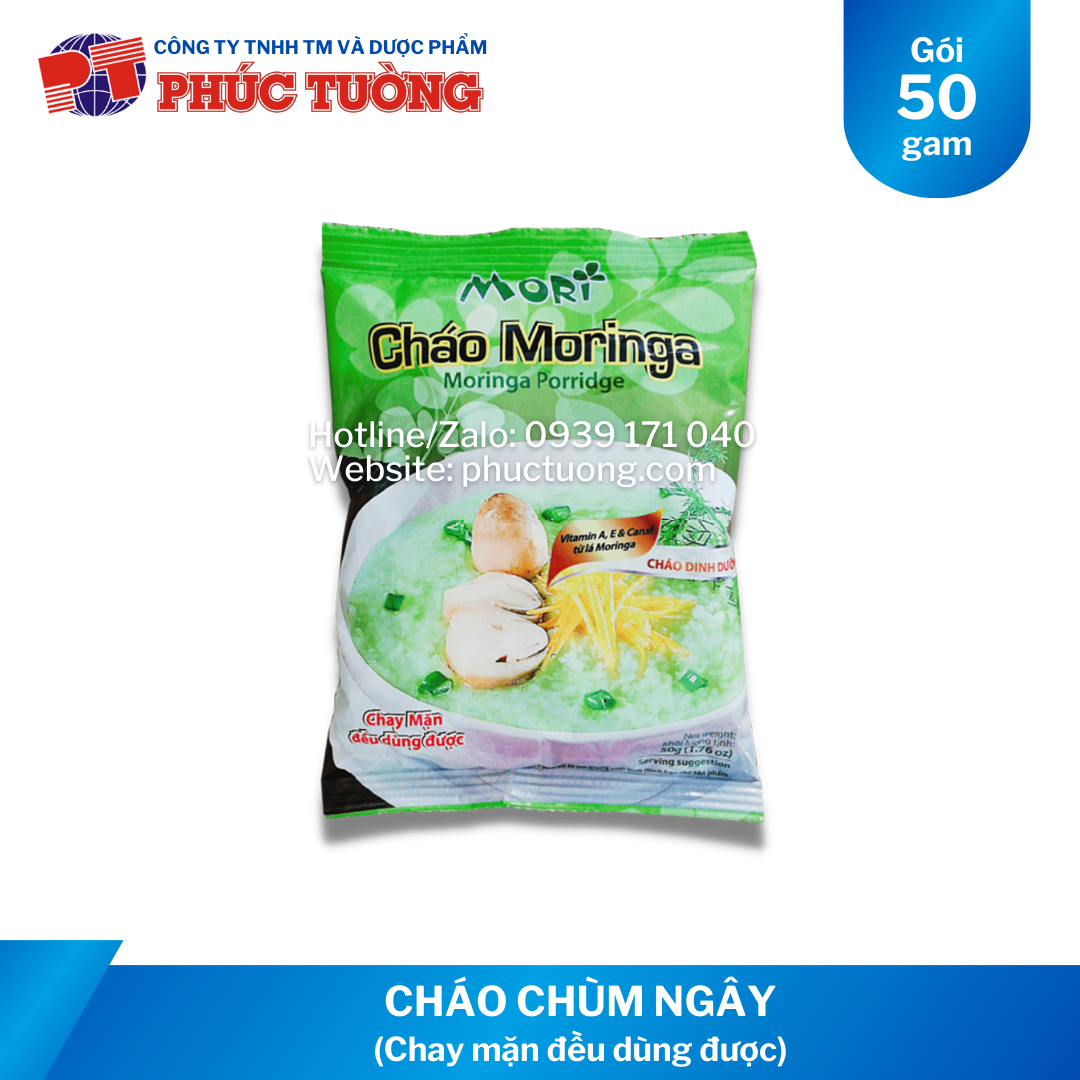 Với sự kết hợp tuyệt vời của loại gạo ngon nhất và tinh chất lá Moringa đến từ thiên nhiên, bổ sung Vitamin A, Vitamin E và Calcium tự nhiên từ lá Moringa, cháo chùm ngây Moringa mang tới hương vị khác lạ. Hãy thử và cảm nhận! Chay mặn đều dùng được.