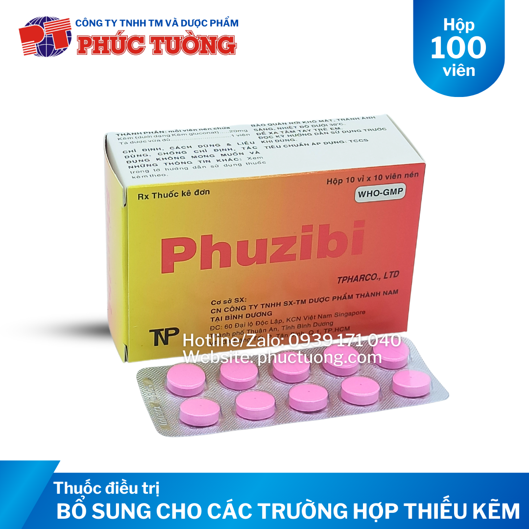 CHỈ ĐỊNH Phuzibi: Điều trị thiếu kẽm đặc trưng là sự chậm phát triển, mất cảm giác ngon miện và suy giảm chức năng miễn dịch. Trong trường hợp nghiêm trọng hơn, thiếu kẽm gây rụng tóc, tiêu chảy, bất lực, tổn thương mắt và da. Giảm cân, chậm lành vết thương, bất thường về vị giác cũng có thể xảy ra.