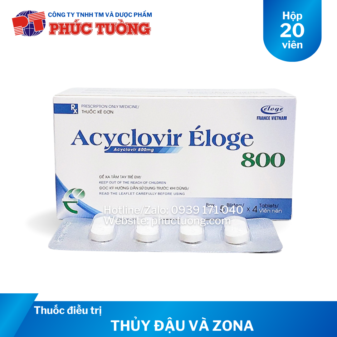CHỈ ĐỊNH Acyclovir Éloge 800: Điều trị thủy đậu và zona cho người lớn và trẻ em trên 6 tuổi.