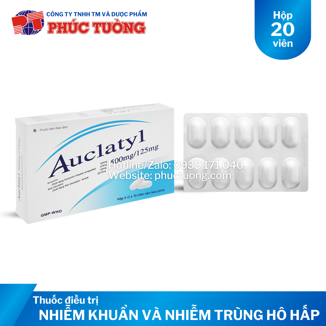 QUY CÁCH Auclatyl 500mg/125mg: Hộp 2 vỉ x 10 viên nén bao phim