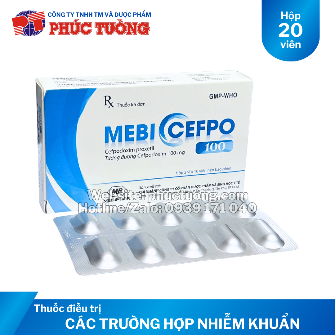 QUY CÁCH Mebicefpo 100: Hộp 2 vỉ x 10 viên nén bao phim