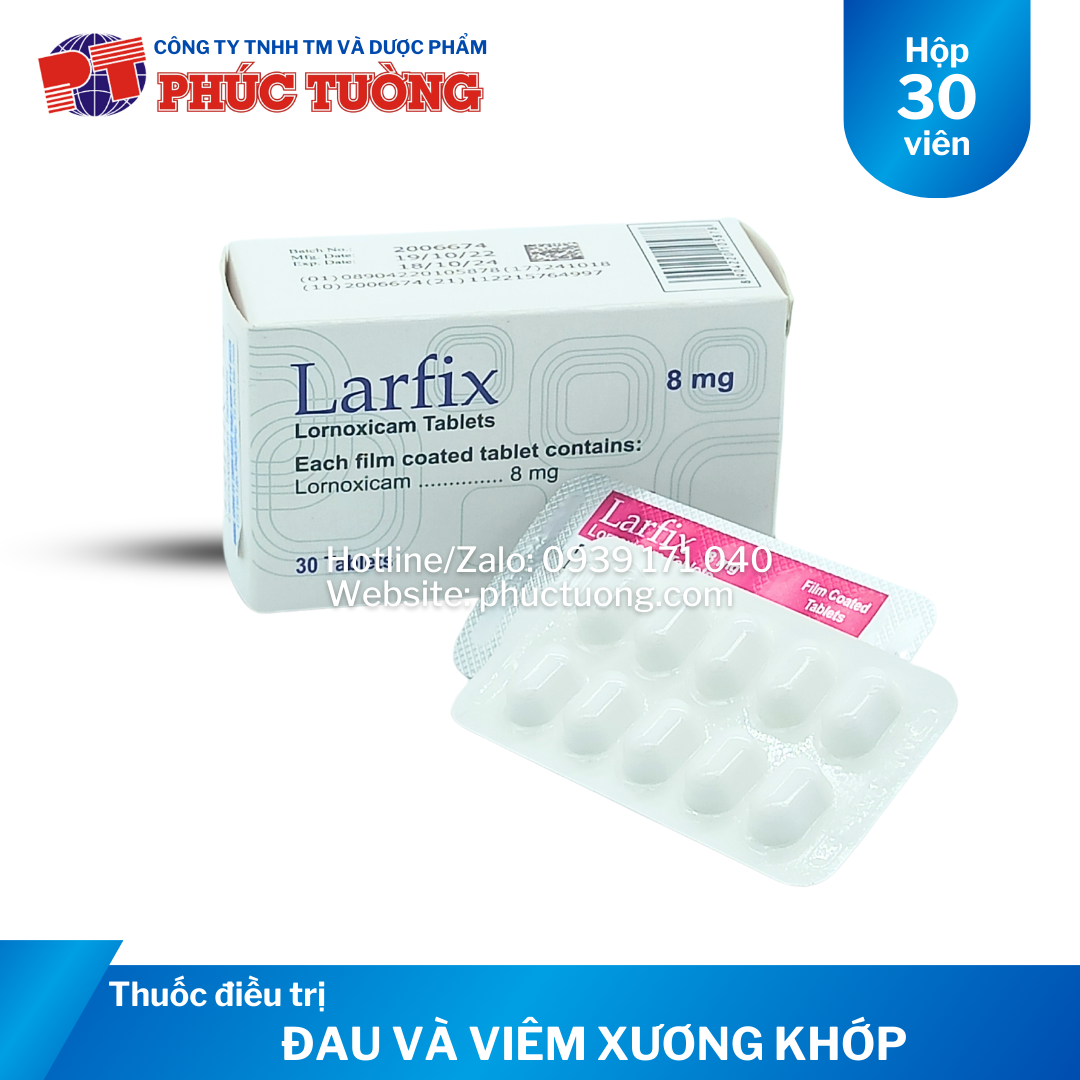 CHỈ ĐỊNH Larfix 8mg: Lornoxicam được chỉ định để điều trị các chứng đau mức độ nhẹ và trung bình, kèm theo triệu chứng viêm, đặc biệt trong viêm xương khớp, viêm khớp dạng thấp.