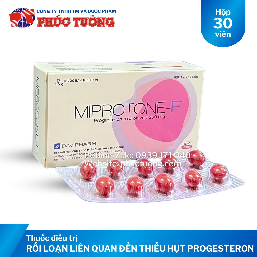 THÀNH PHẦN Miprotone-F: Mỗi viên chứa: Progesterone 200 mg (dạng vi hạt)