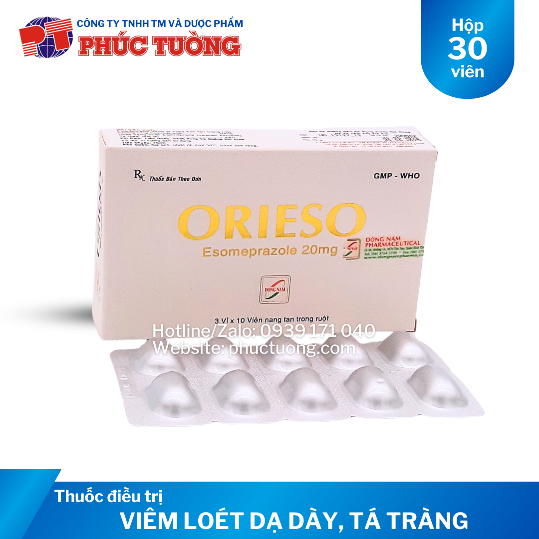 QUY CÁCH Orieso 20mg: Hộp 3 vỉ x 10 viên nang; Thùng 420 hộp