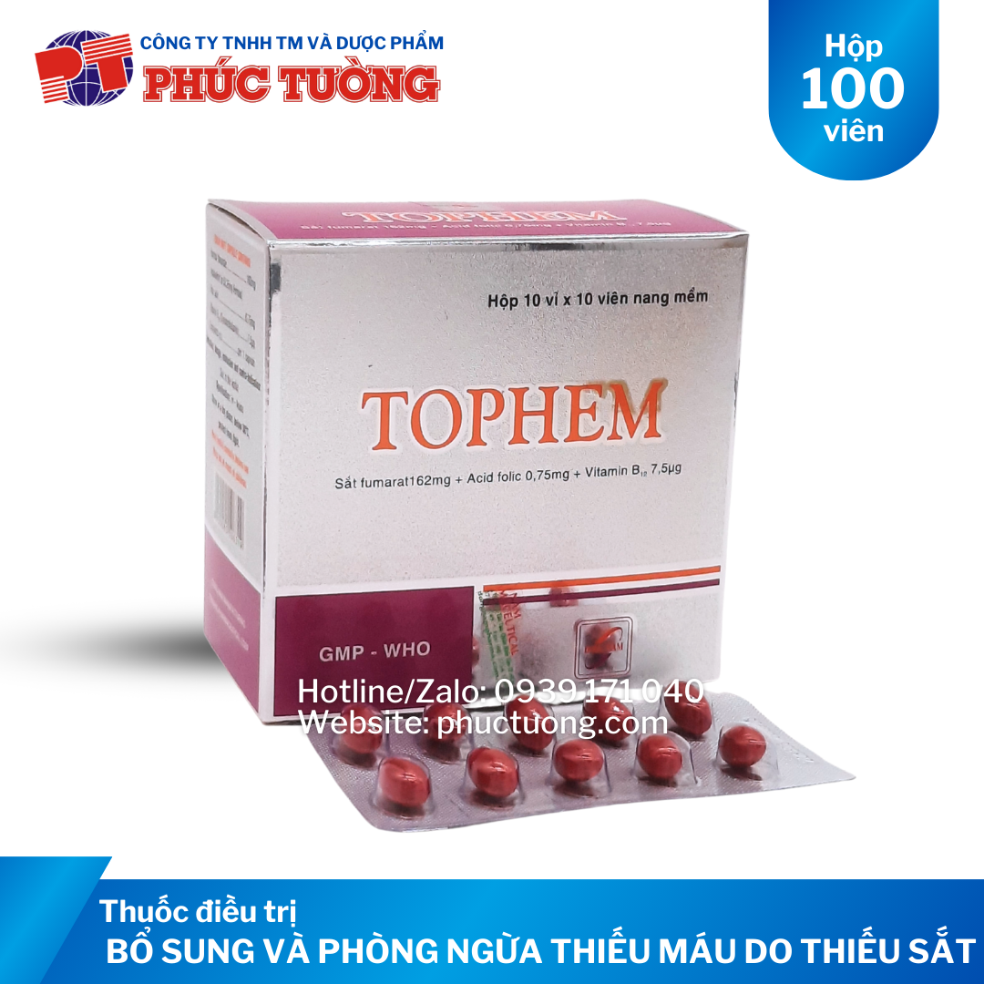 Thuốc Tophem là một trong những dược phẩm các tác dụng điều trị những trường hợp bệnh nhân bị thiếu máu do thiếu sắt.
