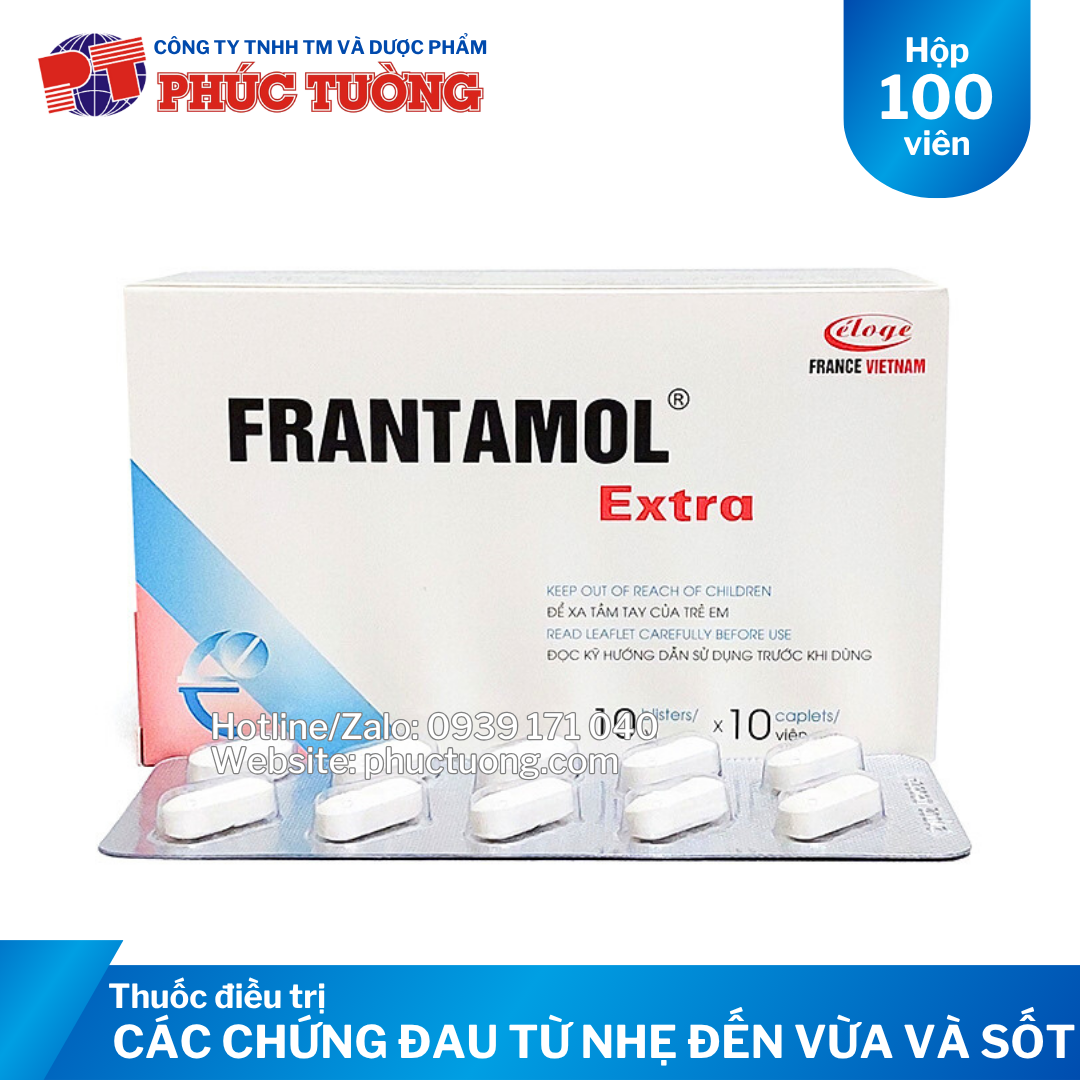 CHỈ ĐỊNH Frantamol Extra: Điều trị các chứng đau và/hoặc sốt từ nhẹ đến vừa như cúm, sốt nhiễm khuẩn, sốt mọc răng hoặc sau tiêm chủng, đau răng, đau đầu, đau dây thần kinh, đau khớp, nhức mỏi cơ, đau bụng kinh, các chấn thương nhẹ, đau do bỏng, đau sau phẫu thuật, đau trong sản khoa, đau sau zona thần kinh.