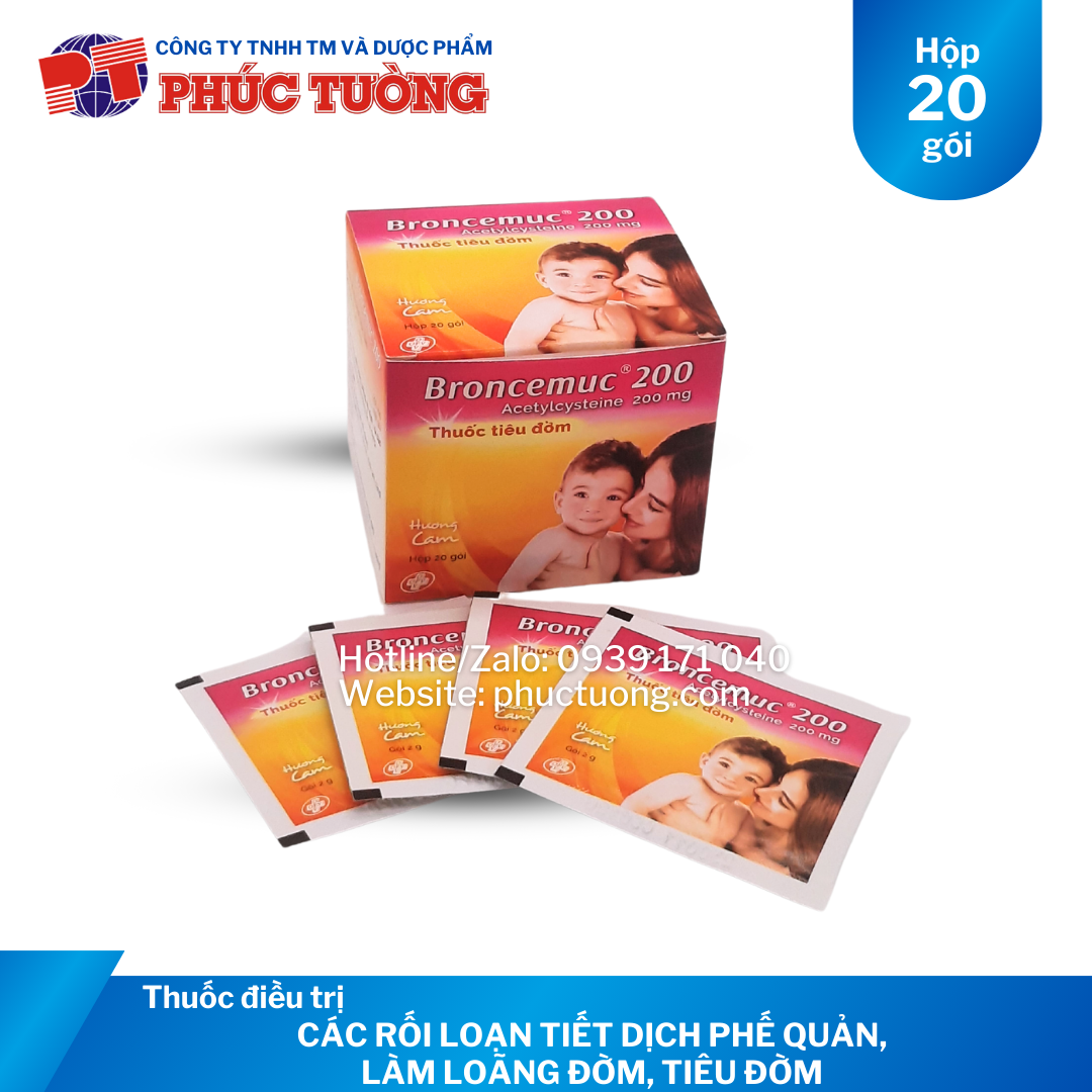 THÀNH PHẦN Broncemuc 200: Mỗi gói 2g chứa: Acetylcysteine 200mg